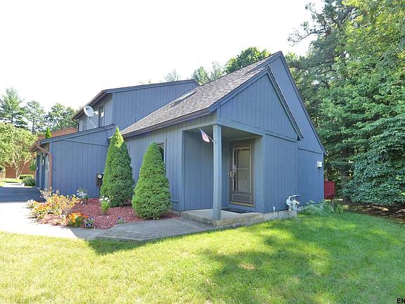 A rare find in Luther Forest...4 bedroom end unit w/full basement and 2 full baths! First floor offers: living room w/vaulted ceilings & sliding glass door to large deck overlooking a private, treed yard, bedroom, renovated full bath w/custom shower, laundry and kitchen w/dining area. The second floor has 3 spacious bedrooms and full bath. Newer roof, gas Rinnai heating system and attached garage. Desirable and convenient location, just minutes to Global Foundries & I87 Northway.