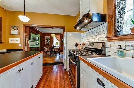 A truly wonderful single-family home on one of Fort Hills finest streets. Quiet, set back from the street; this is a true urban oasis. Pride of ownership shines through in every detail of this stunning renovation. House features wood floors throughout, many period details, an open floor plan, and thoughtfully laid out kitchen with slate counters. 2nd floor has two bedrooms and large full bath, sunny 3rd floor has master bedroom or office space with a lovely view over community green space. Full basement with laundry and room for a workshop. Relax on the front porch or in the beautifully landscaped front and side yards. There is a 40-year roof, freshly painted exterior cedar clapboards, new oven range and refrigerator, new furnace, new water heater, upgraded electrical and a rebuilt chimney with wood stove. 1 mile from Hyde Square in Jamaica Plain. .06 miles from the Jackson Square T stop. Easy access to 93 and Logan airport.