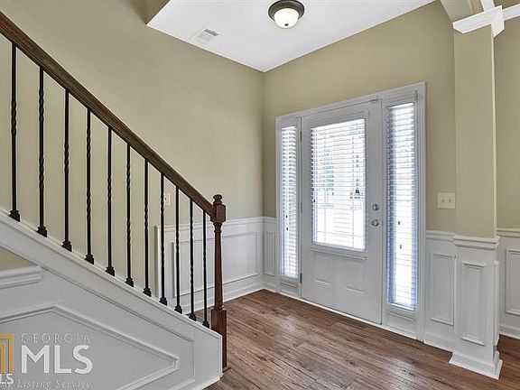 Two Story Home in well established neighborhood features a foyer entry, new hardwood flooring on entire main level, coffered ceiling in dining room with exceptional trim. Open floorplan provides views of family room from kitchen featuring granite counters, stainless steel appliances, island, pantry and window over sink looking out to the backyard. The patio and large fenced-in backyard are perfect for fun & entertaining. Wrought iron railings lead you upstairs to an owners retreat with sitting room, lovely spa like bath has double vanities, separate shower & garden tub. Three additional bedrooms are large with good size closets. This impeccably maintained home is move in ready. Amenities include pool, playground, clubhouse. Close to I-85, shopping & dining.