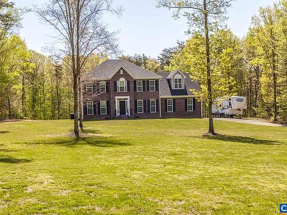 Gorgeous 4 bed 2.5 bath home with huge garage perched on 3 quiet acres in scenic and convenient Madison County is waiting for you! Incredible curb appeal, regal brick front on grassy level yard, surrounded by trees yet 5 minutes to 29, priced under $300k! From the bright light filled open kitchen and great room with fireplace, to the upgraded accent wood trim in the oversized dining room and office / living room, this home will not disappoint! Master Bedroom with wide plank hardwoods and sitting room has attached spacious bath with shower / garden tub and walk in closet. Additional bedrooms, are bright, and freshly painted and next to convenient upstairs laundry. New gutters, paint, stained deck and gorgeous hardwood flooring.