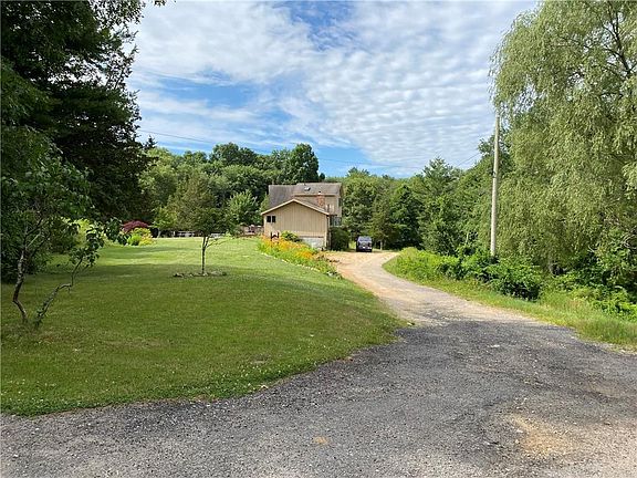 Peace & tranquil say it best when it comes to this spectacular property which has been host to numerous functions over the years & sits peacefully free from the sounds of traffic, where kids, pets, friends, & family alike can relax & make memories for a lifetime. Home is on a little over 5 acres w/ just under 1/2 of that cleared & landscaped. Yard is huge and features beautiful garden beds, fruit trees, and a 2 room shed with 60 amp service. This property has been in the family for generations and was once the location of an 1800's ice house! Home was custom built in 1999 & you can't help but to feel warm & invited as soon as you step inside! Home features cathedral ceilings throughout, custom 500sqft kitchen, exotic granite, stainless steel appliances that are less than a year old, granite center island, lots of cabinets, dining area, pellet stove surrounded by a beautiful stone fireplace made from the stones found on the property itself, & generator. There are hardwoods throughout. Also on the 1st floor are two bedrooms, a full bathroom and a laundry closet. Family room has A-Frame cathedral windows overlooking the backyard. 2nd floor you will find the master suite. Lower level has lots of potential for inlaw and includes 3 rooms, utility & also a walkout. From the kitchen, As you step outside onto an oversized deck, you can relax, entertain, take a swim in the above ground pool, or just sit back, take it all in and listen to the wildlife. Private showings only.