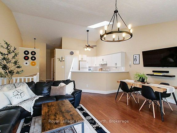 Inviting and tastefully decorated bungalow style condo in Meaford! Furniture can be included if you want to make your move a little lighter! The minute you walk through the door you will fall in love with the open, bright living space, cathedral ceiling, skylight and patio door wall. Offering exceptional value, the features of this home include: Two gas fireplaces, Kitchen with great counter space and pantry, Main floor primary bedroom and updated 4 piece bathroom, Walk out to patio, Open concept living, New flooring, Fully finished lower level with second bedroom featuring a four piece semi-ensuite, Spacious laundry room and Large closets throughout. Main sources of heat are gas fireplaces and heat pump, which also provides main floor air conditioning. Living at Brookside Condos places you within walking distance of Meaford's trendy downtown core and the shores of Georgian Bay. If you love the outdoors, you will find hiking, walking and cycling trails, skiing, golf and boating all within a 5 to 25 minutes drive. Owning this attractive condo allows you to move in and enjoy the lifestyle this area has to offer.