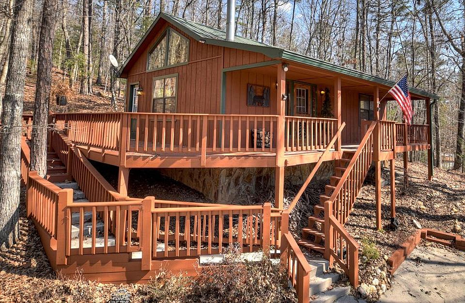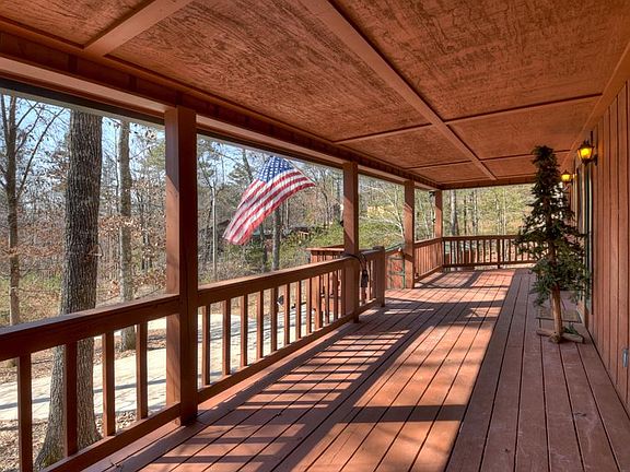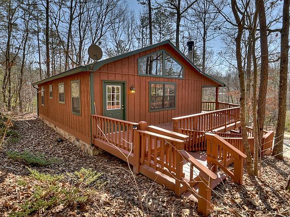 This quaint cabin in the woods is calling your name! Located on a private, unrestricted 2.1 acres between Blue Ridge and Blairsville, there is no shortage possibilities. Step into this well-maintained cabin offering open concept one level living, vaulted ceilings in the great room, wood burning fireplace, newly refinished hardwood floors throughout, two bedrooms each offering fully renovated en-suites with floor to ceiling tile showers, expansive porches perfect for entertaining, plenty of parking and an outdoor storage shed. Perfect for your personal mountain getaway or rental investment. Come see what North GA living is all about!