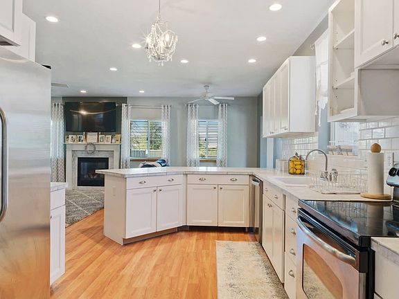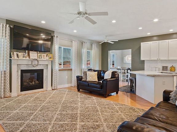 Stylish & roomy modern farm house inspired home. Carrara white marble countertops, Lg bedrooms all with walkin closets,Subway tile backsplash, Brand new main level flooring, master bath with jetted tub, dual vanity, walk in doorless shower & water closet,Seperate climate controls. Oversized garage. 9ft. ceilings on main level, salvaged telephone poles used for front porch posts. Fully landscaped yard w sprinkler system. Underground trampoline. RV pad. Basketball court in driveway.