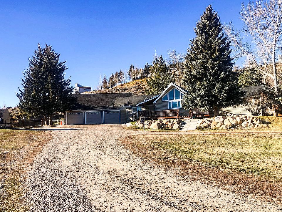 This is your chance to live in town on a little over an acre lot tucked away on a private hillside! The home is surrounded by an array of beautiful aspens, pines & many other mature trees giving it an even more rural living vibe. The large 3 car garage is in tip top condition with heavy duty built ins & plenty of storage space throughout. The outside parking area to the side of the home is ready for another shop to go up, with gas lines, water & electric already installed. As you enter the home the tall vaulted ceilings & large picture windows offer a welcoming atmosphere. The large master, 2 bedrooms & 2 bathrooms are located on main floor, with 2 more rooms & a large family area in the basement. The layout is unique, giving the home its very own personality. It's a MUST SEE!!! Call Becci Fraughton or Jericca Sowers 307 -679-1335 today to schedule a showing or with questions!