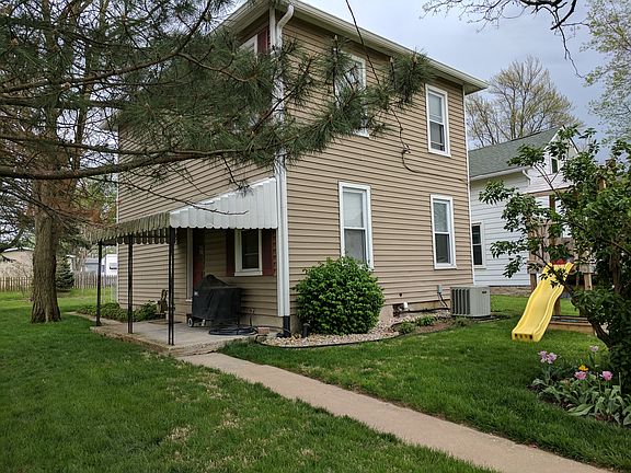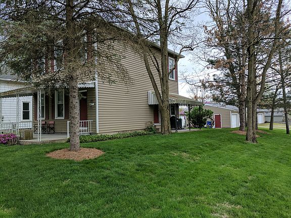 Updated and like new this beautiful Historic Home with a spacious front porch surrounded by a large 1/4 acre corner lot will not last. Amazing 8 car garage with openers, electric and cemented flooring. Set up your work/hobby space and have room for multiple cars and other toys. This home has an open atmosphere with 10 ft ceiling.Light streams in from multiple windows in each rm. High Efficiency furnace in 2015,Water main replaced in 2010, plumbing updated, wiring updated,newer gutters,Remodeled kitchen with Stainless stove,dishwasher and microwave,1st floor laundry with shelving, Remodeled bathrooms with new fixtures.Second floor hallway is open to space for home office.Large master with deep closet. Do not wait to enjoy all this and a beautifully landscaped yard with its own grape arbor!!