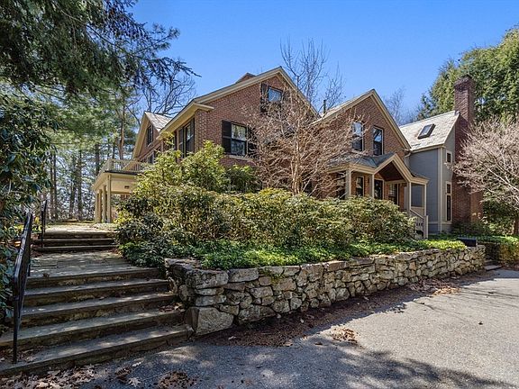 Majestic 12 room colonial perched on 2.2 serene private acres. An elegant grand foyer welcomes you into this home filled with wonderful period details. Commanding formal living room with fireplace, three sided window seat leads into fireplaced study with built ins. Grand formal dining room w/French doors, built ins and fireplace perfect for large gatherings. The kitchen features adjoining butlers pantry and breakfast area opening into step down family room w/fireplace drenched in natural light and French doors accessing a patio. Laundry and powder rooms complete first floor. Second level offers 4/5 bedrooms and 3 full baths, including a primary suite w/fireplace and generous closet. Large walk up attic provides great potential for bonus space. The professionally landscaped property includes stone walls, perennial gardens, rock gardens, and wood illuminated paddle tennis court w/hut. Desirably located close to Weston Town Center, Rail Trail and Conservation Trails.