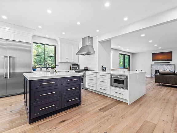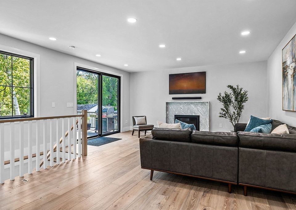 Stunning renovated open-concept Colonial with 6 bedrooms and 4.5 baths designed for modern living. Enjoy breathtaking views, a formal dining room and a chef’s kitchen with Thermador appliances, quartz countertops, breakfast nook and coffee bar. The massive primary suite features a gas fireplace, walk-in closet, en suite bath with curbless shower and heated floor, plus expansive windows overlooking the serene backyard. Throughout the home you’ll find white oak floors, Pella aluminum-clad windows, custom closets, recessed lighting and abundant storage. The lower level offers a walkout in-law suite with kitchenette and theater room. The dedicated laundry includes quartz countertops, large-capacity washer/dryer and deep sink. Extras include two gas fireplaces, Mitsubishi HyperHeat HVAC with 3 zones, irrigation and a 2-car garage. Granite entry pavers, HardiePlank siding and Azek decking complete this exceptional home close to playgrounds, hiking and top Lexington Schools.