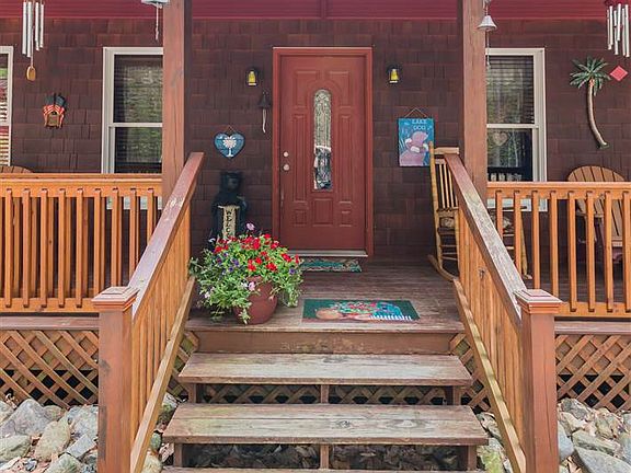 The best of both worlds - the Adirondacks and the Lake! Private year-round country home with 7+ acres AND a private nearby beach on Great Sacandaga Lake (Day Center Beach Association). ($130 annually pays for the beach membership with boat mooring. Nice level picnic area with picnic tables and grills.) This 4-bedroom, 2 bath home has it all - a rippling creek, open front porch, side deck, large eat-in kitchen, 2+ detached garage, portable Honda generator, and large shed. Some furnishings included. Lawn mower in garage is negotiable.