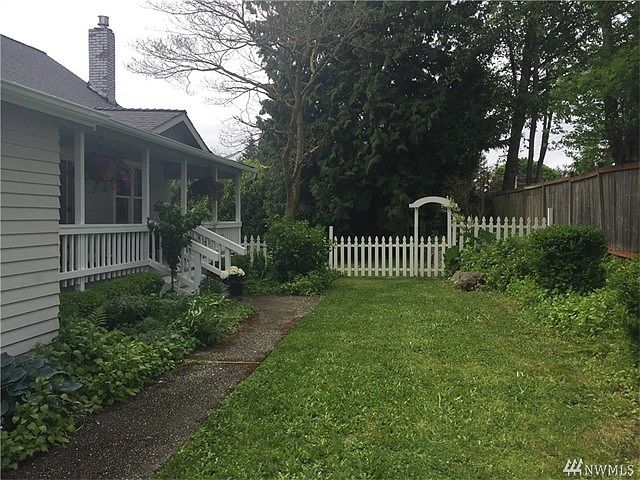 This home is full of old and new for a truly special feeling! High ceilings with a big kitchen island! Large deck overlooking a beautiful, level lot with fruit trees & berries with a white picket fence! Wainscoting and built ins! Great utility/mud room. Sweet front porch to relax on! Two-car attached garage and a shed. Eight year old roof. NEW interior paint and carpet! Fully fenced! Wonderful access, close to shopping & Martha Lake. Roughed in basement provides extra storage or potential square footage to use.