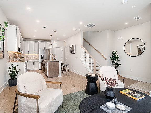 Welcome to effortless living in a stylish two-story loft located in the Nations community within West Nashville. Featuring 3 bedrooms and 2.5 baths, this Cline floorplan features an open layout with thoughtful details throughout. The free flowing first floor perfectly connects the bright living area to the large kitchen boasting ample cabinet and countertop space. High-end finishes throughout, including gorgeous dark navy quartzite countertops, stainless steel KitchenAid appliances, and accent tile in the bathrooms, silver hardware, adding a touch of luxury to the home's contemporary design. Upstairs you will find a spacious primary suite offers a stunning walk-in closet and a private balcony, your own peaceful retreat. Enjoy the convenience of a centrally located full-size laundry room, complete with upper cabinets and washer/dryer included! Down the hall are 2 additional bedrooms and full bathroom. Outside, the community offers quaint landscaping, a dog park, cozy fire pit, and walkable sidewalks perfect for evening strolls or morning jogs.