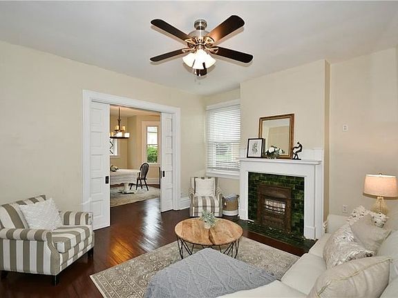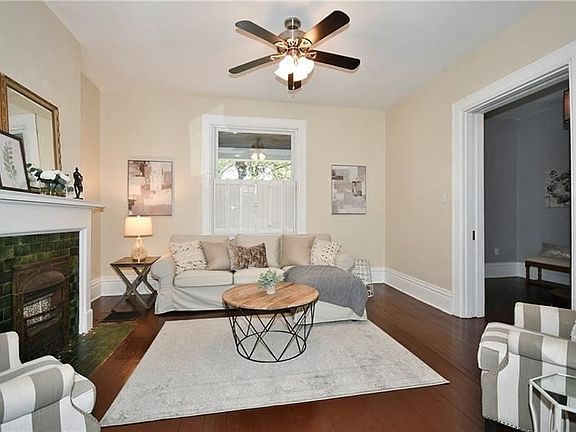 Perfect mix of old-world charm & upgrades galore, sure to impress! Newer metal roof w/lifetime transferrable warranty, 9ft exterior french drain, whole house water filter, sewer & water line (inside & out), gas lines from the meter to the house, water heater 2021, whole house A/C (plus ductwork to the 3rd fl), wiring & light fixtures too. Covered front porch perfect for relaxing. Upon entry you're greeted w/fresh neutral paint throughout & newly stained HWFL's in LR, DR & entry. Pocket doors separate LR/DR both w/deco fireplaces. Bright white kit w/awesome exposed brick wall. 1st fl flex space has been imagined as mud rm, den or 1st fl laundry. The hook ups are there! Full BA on the main level w/beautiful new flooring. 2nd fl has 3BRs w/fresh stained fl's, newly renovated classic white full BA. Primary BR w/deco FP, BR 2 w/charming bench seat. 3rd fl, 4th BR/game rm w/new carpeting, insulation & 2 closets. Level yard w/new privacy fence, concrete porch & 2 off st parking spaces