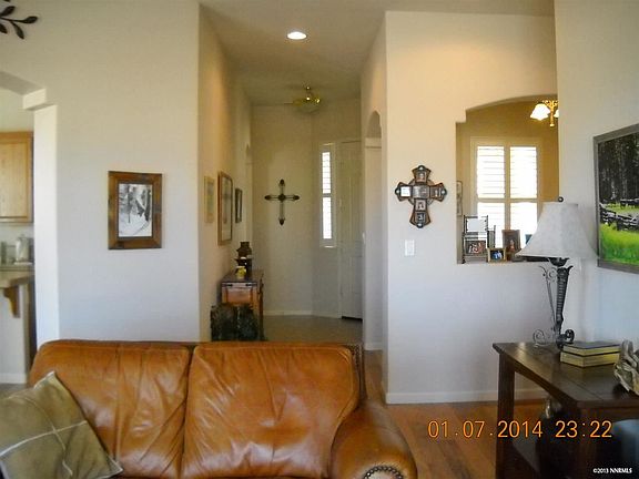 This beautiful well maintained home sits on the Dayton Valley Golf Course. Home features plantation shutters newer hickory floors paint newer dishwasher kitchen offers lots of counter space and cabinets that pull out. Master bedroom includes an alcove that can be used for an exercise area sitting area office and/or nursery. The backyard is beautifully landscaped. There are two patios that have stamped stain concrete. New water softener installed.