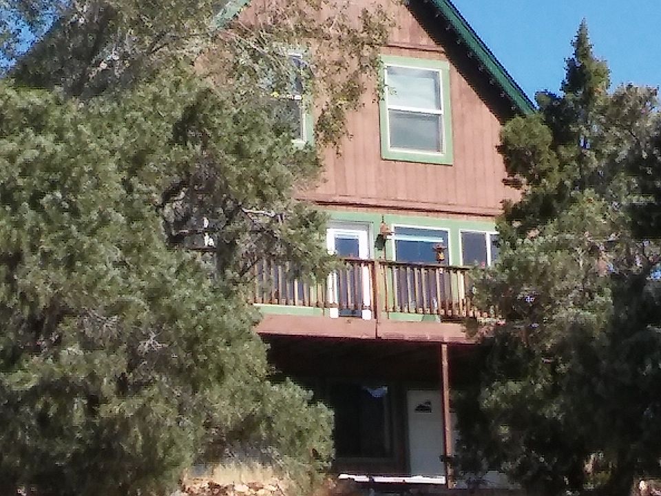 Extensively remodeled in 2017, with new roof, kitchen, heating system. "A" frame cabin, with 2 floors of living area over a finished garage. Spectacular views with continuous exterior deck.