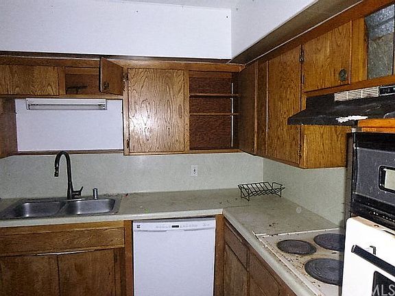 #299 Large, private lot with raised garden beds, pond, play structure, mature tree and converted shop! This two bedroom, one bath is in need of some repairs but has lots of potential with some TLC! Well lit living room with built ins and vaulted ceilings. Lots of storage. Convenient location near shopping and amenities.