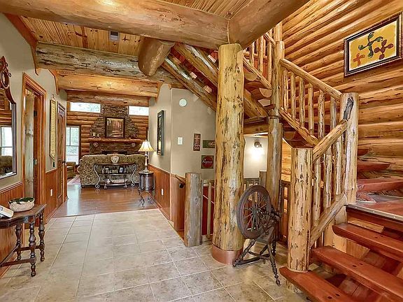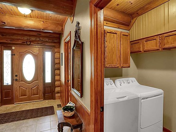 Welcome Home to Dogwood Hills, a handcrafted, Amish built custom log cabin sitting on over a wooded acre. The home was crafted by Meadowlark Log Homes of Libby, MT. The logs range from 9 to 18 inches in diameter. Beautiful tongue & grove pine ceilings are featured on levels 2 and 3. The family room boast a 2 story stone fireplace and breathtaking window views can be seen throughout the home. Pulling up under your porte cochere feels like you're stepping out at a luxury lodge in the mountains