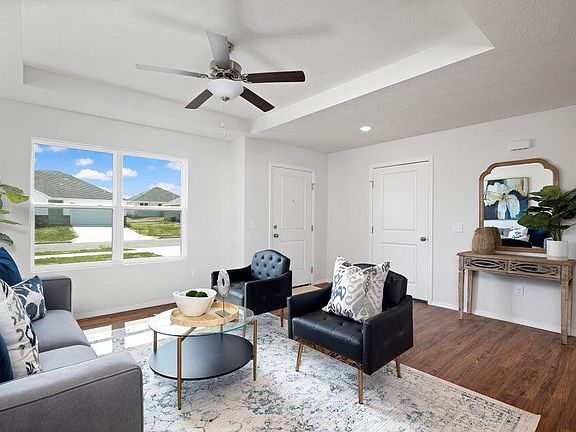 The Chelan plan is the definition of maximized space. Enter from the front porch or the 2-car garage and be immediately welcomed into the living room with an open view through to the dining and kitchen areas for family meals and meaningful evenings together. Natural sunlight from the sliding glass doors, leading to the back patio, makes the kitchen's large island the perfect spot for preparing delicious family recipes while grabbing your recent grocery trip items from your walk-in pantry. Retreat to your thoughtfully designed master bedroom, featuring an en suite bathroom and walk-in closet. Two additional bedrooms provide room to grow, work and play with their own spacious closets.
