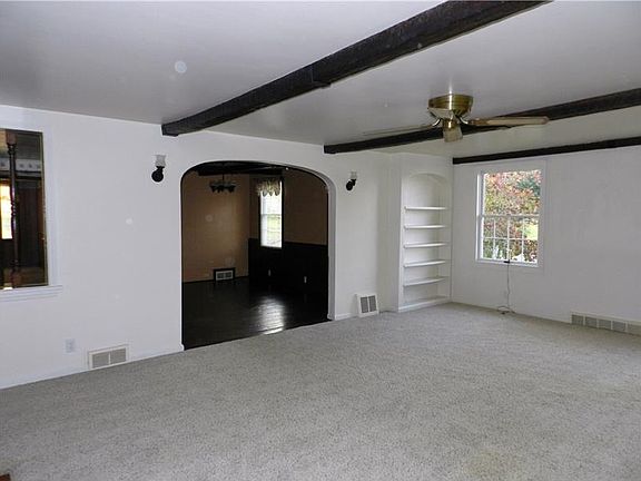 Enjoy country comforts & style in this 1230 s/f raised ranch ideally sited in a quiet township setting. An undeniably spacious sundrenched living room is underscored in neutral carpeting and anchored by a cozy gas fireplace with fluted, intricately carved surround and contrasting brick inlay. Living room is illuminated with numerous windows and complimented with a beamed ceiling while transitioning into a formal dining room through a dramatic arched opening. Underscored in original wood flooring, the formal dining room is encircled in barn-beam look wainscoting and accentuated with a rustic beamed ceiling. Adjacent eat-in country kitchen showcases ample cabinetry, butcher block-inspired counters, faux-brick accent wall and earth-toned flooring while offering prompt access to rear deck overlooking lush backyard and swimming pool. Other noteworthy amenities include a high-efficiency furnace, new water heater and 1-car integral garage. Ideally located minutes to I-376.