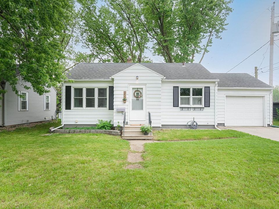 Welcome home to this irresistibly cute and move-in ready 2-bedroom gem. Step into the inviting living room, bathed in natural light streaming through the updated vinyl windows—perfect for unwinding with your favorite show or catching up after a long day. The eat-in kitchen features gorgeous cabinets with tiled backsplash, tile floor, and coordinating stainless steel appliances, making meal prep a joy. Discover two wonderful bedrooms, one with original hardwood floors and a large closet featuring built-ins. A nicely updated bathroom with tile shower is conveniently situated between the bedrooms and living space. Downstairs, the basement offers ample storage and potential for customization to suit your needs—imagine creating a cozy entertainment area or a home gym! Outside, the attached one-stall garage ensures daily convenience, while the fenced backyard becomes your oasis for summer barbecues and fall bonfires. You'll also appreciate the convenient storage shed for organizing tools and lawn equipment. Perfect for first-time buyers or those looking to downsize, this move-in ready home is waiting for you. Schedule your showing today!
