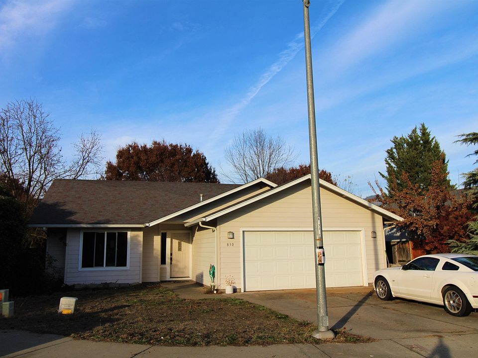 Here is a 1435 sq/ft home with 3 bedroom, 2 bathrooms, spacious living room with vaulted ceilings and decorative planter shelves. The kitchen is light and bright, has plenty of cupboard space for storage and a sliding glass door that leads to the covered back patio. Home has laminate flooring thru-out, side yard with raised garden beds, private back yard and located at the end of a quite cul-de-sac. The garage has 12x12 room that is currently being used as a bedroom. All information deemed reliable, but not verified and is subject to change without notice. Buyer to do own due diligence.