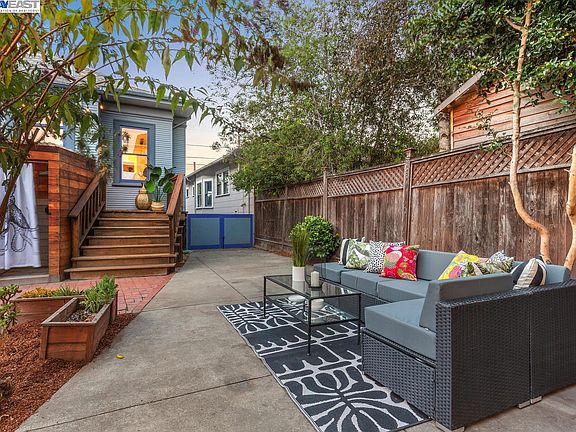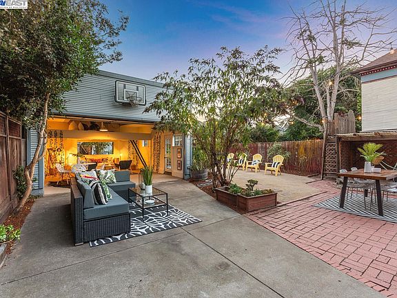 Ultra-charming 1,311 SqFt Alameda Craftsman urban farm imbued with creativity and boho chic sensibility with gardens, chicken coop, outdoor shower, and 373 Sq Ft bonus finished 2-car garage with loft. Step inside the single-level home to find hardwood floors that lead to a sunny living room and dining room with bay windows, high ceilings, modern touches and beautiful archways. Architectural features include built-in shelves, tall windows, and coved ceilings. The bright kitchen is a culinary haven with stainless steel appliances and a large walk-in pantry. In addition to a full bath with shower-over-tub, there is a convenient powder room situated at the back of the home. Both bedrooms are over-sized and filled with natural light; the primary offers two large closets. You’ll be pleasantly surprised by the level backyard- a certified Bay Friendly Garden with pollinator-friendly flowers, and plenty of space for outdoor dining or relaxation. There’s ample off-street parking plus the garage is ready for your imagination as an office, studio, or guest room with sleeping loft, or future ADU. Easily stroll to West End eateries, grocery stores, farmers market, or the revived Navy base with ferry service across the bay. Close to Washington Park and beaches for true island living!