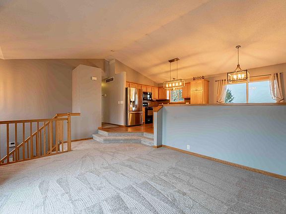 Discover this wonderful 4-bedroom, 3-bathroom home situated on the outskirts of town. You'll love the serene view of farmland from your back door, with no neighbors behind you! Step into the vaulted main floor featuring an open concept layout. The living room is filled with natural light thanks to its large bay windows. The eat-in kitchen includes a central island and updated light fixtures, while most of the home boasts new carpeting. Upstairs, you'll find three spacious bedrooms and a full bathroom. The lower level offers a vast family room, an additional bedroom, and another full bath. The expansive backyard is enclosed by a full wood privacy fence and features a wooden patio. Plus, enjoy peace of mind with a brand-new roof! A quick closing option is available.
