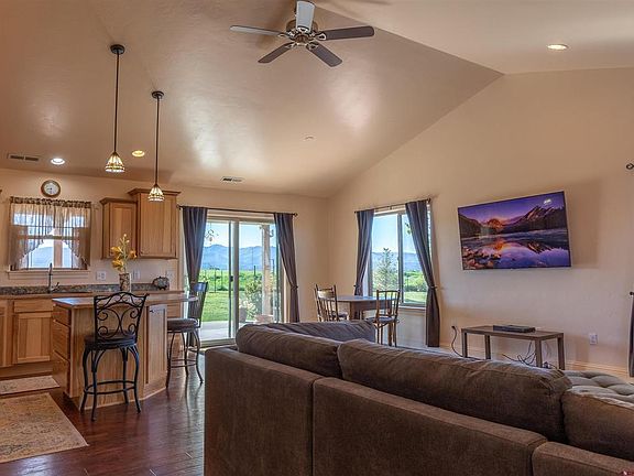 Live in town with a country feel! Come and see this well kept single story gem today. This home has high vaulted ceilings in the great room, 2 bedrooms, one full bathroom and the primary bathroom has a walk-in shower. There is a walkout covered porch out of the primary bedroom, in addition to the kitchen. This home is on one of the larger lots in Mesa Meadows and is on an exterior lot backing up to open pasture. The backyard is large with established landscaping throughout, making your own private oasis. The views of the San Juan Mountains are stunning. You will enjoy sitting on the porch watching the sunrise over the San Juan Mountains (HD Mountains), seeing occasional wildlife, and cattle grazing seasonally. The garage is heated with a utility door leading to the fenced in graveled area to keep your pets out of the yard. Walking distance to parks, recreation, schools, as well as downtown Bayfield shops and restaurants.