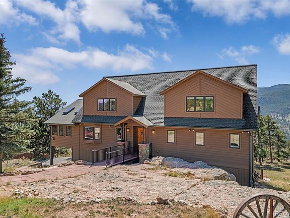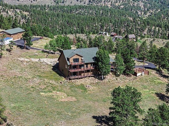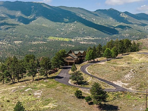 Own your own mountain with panoramic and protected views of Pike National Forest and the Continental Divide! This 4 bedroom, 4 bath updated/remodeled home is located on 35 acres in the coveted fire-wise community of Bailey Estates. Impeccably maintained, this cedar-sided 3800 sqft home impresses at first glance with an updated stained knotty Alderwood front door. The main floor features a large living room with vaulted wood-planked ceilings and gas fireplace. A remodeled, dine-in kitchen features maple cabinets, stainless steel appliances, quartz countertops, an induction cooktop, soft close cabinets and under cabinet lighting. Conveniently located on the main floor, the Primary Bedroom overlooks Pike National Forest and the Continental Divide from updated triple pane Pella windows and dedicated slider onto a noncombustible brick deck. The updated Primary ensuite bath features quartz countertops and heated flooring. Upstairs offers two additional bedrooms that share a Jack and Jill bath with quartz countertops and heated floors. A large loft provides another space for gathering and overlooks the living room below. A walkout basement offers an additional bathroom and bonus room featuring the home's third fireplace. Additional updates include insulated knotty Alderwood garage doors, a reliable well located 400 ft deep through granite with an additional 500 gallon holding tank onsite, whole house propane generator, whole house surge protector, whole house humidifier, tankless water heater with water filtration and softener. The 30X60 cement-sided shop is heated and the property is accessed by a recently sealed asphalt driveway that facilitates snow melt. Located 10 minutes from the town of Bailey as well as the Platt County Fire Department. Steeped in local history, this home was built & owned by the Developer of Bailey Estates!