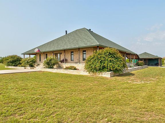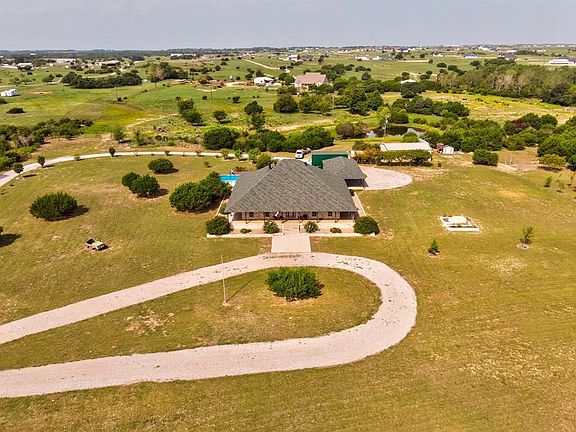 Beautiful Home sits on 10 acres that features an open floor plan with 2 large living rooms and boasts a beautiful see through fireplace. Property has an additional separate guest quarters approx. 1,200 sqft. Features to main home are seasonal tank, storm shelter, wrap around porch with new covered deck and oversized above ground pool installed 2019, multiple RV hookups, peach and pear trees, 1 year old roof, New tankless hot water heater, new range, new disposal and faucet in kitchen, '17 Water softener, new tile and counter in master bathroom, newer well house, flooring installed in den, dining room, living room in 2018, loft with office, lots of storage in home.