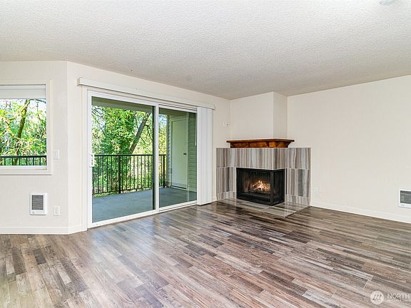 Investors! Immediate income with this fabulously updated condo that is conveniently close to everything! Complete interior remodel in 2021 with vinyl plank floor, quartz counters, new appliances, extra cabinets in kitchen and bath, paint, updated fireplace, carpet in bedrooms, doors & trim. All appliances included. Spacious deck w/locked storage cabinet; community lawn area. Located just steps from the Cross Kirkland Corridor Trail and less than 1 mile to Kirkland's waterfront with shops and restaurants in between. Less than 1 mile to Google/Facebook/ Microsoft. New roof in 2024, low HOA dues! Investors and new home owners- property is subject to tenant rights, lease expires April 2026. Photos were taken before current tenant occupied.