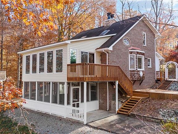 2nd lot has 50ft of waterfront on plat map with possibility of it's own private dock too! Private full brick custom home w/ several rooms & 2+ acres w/ around 250 ft of waterfront (2nd waterfront lot 50ft wide w/ own water meter @ approx .38 acres)! Private dock with excellent water depth for the area! Make this home your dream home! So much potential! 2 level full brick storage building with wood burning stove (lower level) and power! Long range views from the breakfast area, main floor sunroom and lower level screened porch with new LVP and more! Pre-approved buyers welcome! Schedule your showing today!