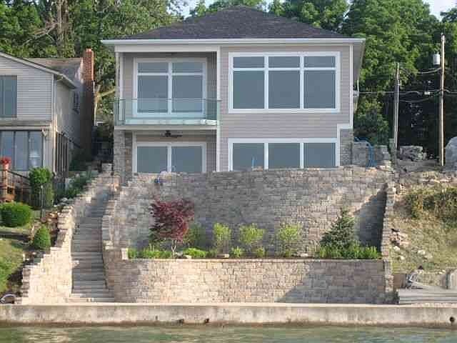 Everything one could ask for in a lake home. Wall of glass lakeside & extra attn to detail. 12' ceilings main & 10' ceilings lower level. Granite countertops in the gourmet kitchen, lower level kitchenette & all bathrooms. The main kitchen has a breakfast bar, cherry cabinetry, & a wonderful appliance pkg. Master bath has cherry cabinetry, glass wall shower w/pebble feature wall & soaking tub.Landscaped w/paver brick patio & stone paver steps to the lake. Hardy Plank siding. Back lot w/sewer tap included.