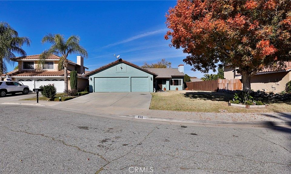 Welcome to 830 Mirage Ct in San Jacinto. Absolutely charming single story home in a cul-de-sac with a 3 car garage. This home shows beautifully with LVP flooring and tasteful finishes. As you walk in the door you will notice the cozy fireplace in the living room with lots of natural light. Around the corner the kitchen has a large breakfast counter and nook area that is open to the family room. The master bedroom is good sized and has a walk in closet. The connecting ensuite master bathroom has also been recently upgraded. The other two bedrooms are set towards the front of the home as well as the other upgraded guest bathroom. The backyard is a blank slate, ready for the new buyer's imagination and touch. No HOA and low taxes make this home a must have.