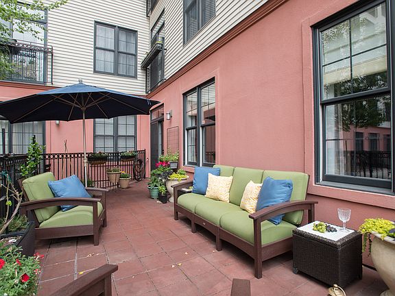 Your urban oasis is here. Welcome to 830 Monroe 2A, a 2 bed 2 bath condo with its own private 270 sqft terrace. Whether you are a gardener or an entertainer, you will have plenty to enjoy in this amazing outdoor space, which is visible from every window of this sunny condo. Inside, this well-laid out 1151 square foot home offers luxurious modern living: high ceilings, recessed lighting, gleaming cherry hardwood floors, central A/C, generous custom closets, sparkling marble and tile baths, and pre-wiring for a sound system. The kitchen features stainless appliances (including new fridge and dishwasher), granite counter top, undercabinet lighting, pendant lights, breakfast bar, and it is open to a dedicated dining area as well as the living room. The master suite includes a large walk in closet and immaculate en suite bathroom with a glass shower. This unit comes with deeded parking spot. Fields Crossing is a 10-year young building located steps from 9th St Light Rail, Monroe Arts and Culture Center, Shoprite, and several new parks in NW Hoboken. The building features an elevator, fitness room, and a large common outdoor patio.