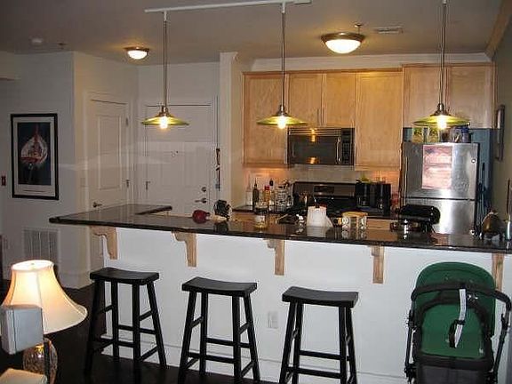 Landlord pays fee! Gorgeous South facing 2 bedroom/2 bath apt in an elevator building with parking available! This fourth floor apt gets amazing natural sunlight with high ceilings and brazilian hardwood floors throughout. Modern open kitchen boasts granite counters, stainless steel appliances, tons of cabinet space and breakfast bar. Spacious living room features floor to ceiling windows, juliet balcony, crown molding, and recessed lighting. Master suite bathroom is appointed with a double wide marble vanity and subway tiled shower, while the large walk in closet has custom built-ins throughout. Second bedroom is on the opposite side of the home and also features a good sized closets with custom shelving. Central air, and washer dryer in unit complete the home. Building has a fitness center (that is open!), common courtyard, and on-site garage. Located just steps from the 9th Street light rail, commuting to the city is a breeze! Great location close to the Monroe Arts Center, ShopRite, and a new park! Nice sized covered parking space avail for $250/mo. Available now!