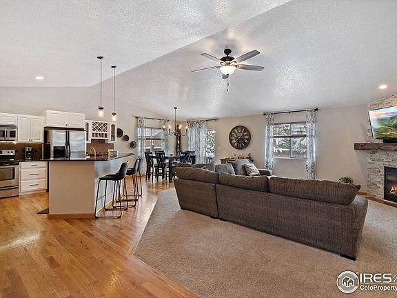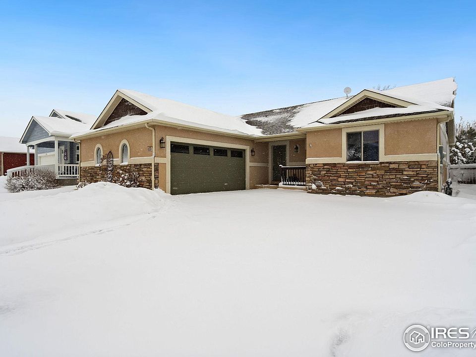 Rare offering in the highly desirable Peakview Meadows Subdivision! Immaculately maintained ranch style home with finished basement and oversized two car garage. Enjoy the primary retreat, en-suite, walk in closet and laundry room all on the main level! Open concept between the kitchen, dining and living room with a cozy gas fireplace. Eat in kitchen includes granite counters, custom cabinetry, and bar top. Finished basement including bar area, family room, guest bedroom, bathroom, and large storage area. On demand tank-less hot water heater. Get ready for summer with a great outdoor retreat. Oversized garage offers extra space for storage or work area. Ideal location to downtown Berthoud, parks, playgrounds, and I-25. Enjoy local amenities of the new recreation center, TPC golf course, Carter Lake and the entire front range. Minimal HOA with no metro tax district which provides a low cost of ownership!