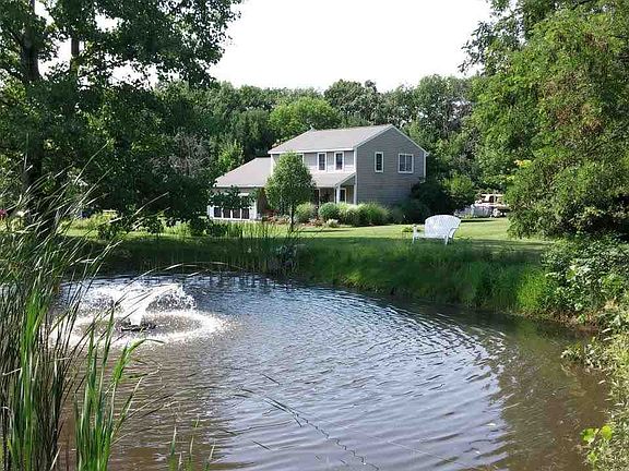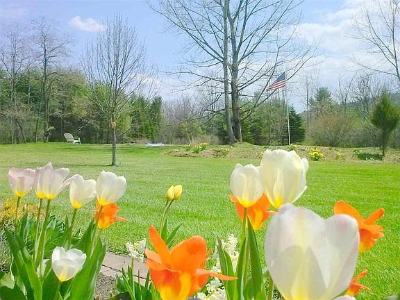 Price Reduced! This beautiful 4 bedroom colonial is tucked away on a private and lush 6.02 acre parcel bordering a stream and surrounded by magnificent mature perennials, grasses, a tranquil pond and gorgeous mountain views. Use the extra space of a 3 bay detached outbuilding to store your cars or your toys! The attach. 2 car garage has been transformed into a summer party area with built in cabinets and an entertaining bar area! 50 yr HardiPlank siding installed in 2006 Owners want an offer!