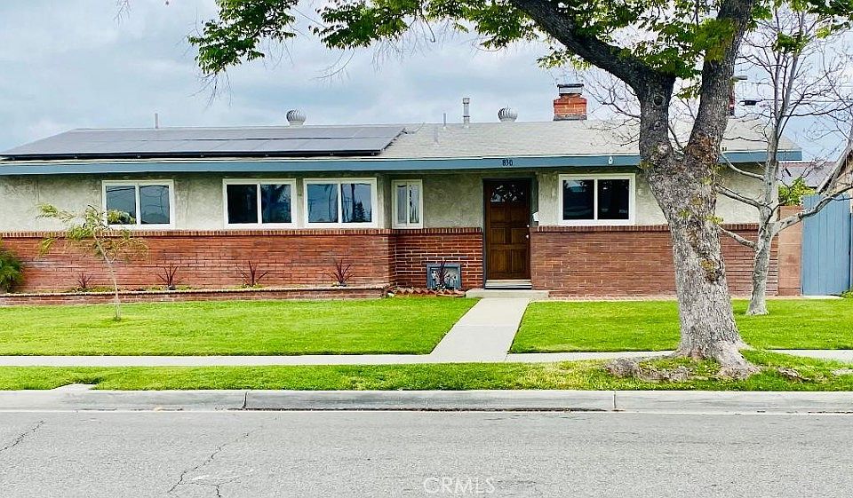 Excellent opportunity to acquire property in this well-maintained Anaheim neighborhood. This 4 Bedroom, 2 Bath, 1,308 square foot single story residence presides on a large corner lot with a park-like back yard. The home has clean lines, with a freshly painted interior, newer laminate flooring and ceiling fans. The wood burning fireplace in the living room might make a great gathering place with view of the yard and blossoming apple tree. This home's central air is generated by the fully owned and paid SOLAR system installed by the City of Anaheim which offers greatly reduced electricity costs. The spacious 1 car detached garage offers additional storage and space. Side entry gate gives access to large concrete pad for an RV, boat, off road or extra vehicles. The City of Anaheim is where its at, with endless dining, shopping, recreation, and entertainvemnt venues. Strong potential upside.