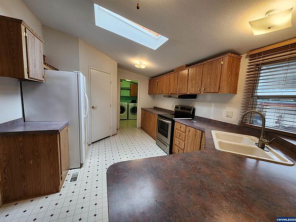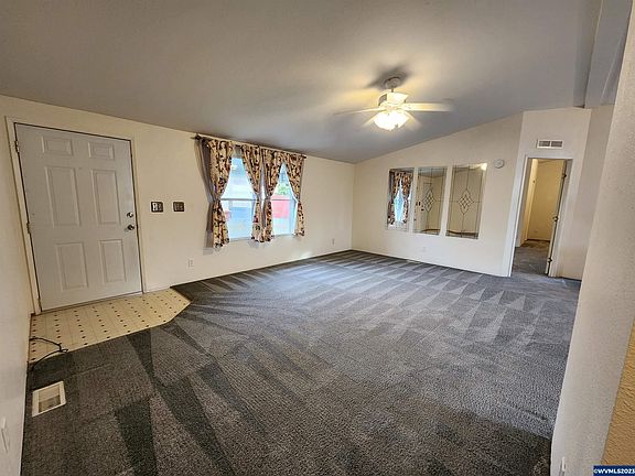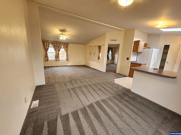 Quiet well-maintained family park, close to downtown and schools. 3br, 2ba - Large primary suite, open floor plan with living space - dining - kitchen, vaulted ceilings, kitchen w/ new range, walk-in pantry. Roof, furnace, and heat pump replaced in 2016. Pets are allowed in park, as long as they do not disrupt the community. Sale contingent on buyer(s) being approved by park; application available from manager on-site. Buyers to do due diligence with Bavarian Village Park Management.