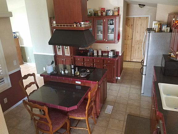 This home offers some truly hard to find features including a large living room with a separate family room & entertainment room. A beautiful island kitchen with a breakfast nook and stainless steel appliances included. The master bedroom has a large office / den and also includes a large walk in closet. There is a separate shower and soaker tub in the master bath. With a newer heat pump, vaulted ceilings, and ceiling fans throughout, this home maintains a comfortable and consistent temperature all year long. Outside you will find a Huge fenced back yard with a wonderful garden, a small pond with a fountain, a patio area for entertaining and a garden storage shed. There is a large 12×20 tuff shed / workshop with 2 lofts that is located on the back corner of the property. The carport also has a small storage space. Space rent is $537 a month and includes water, sewer, garbage and yard debris.