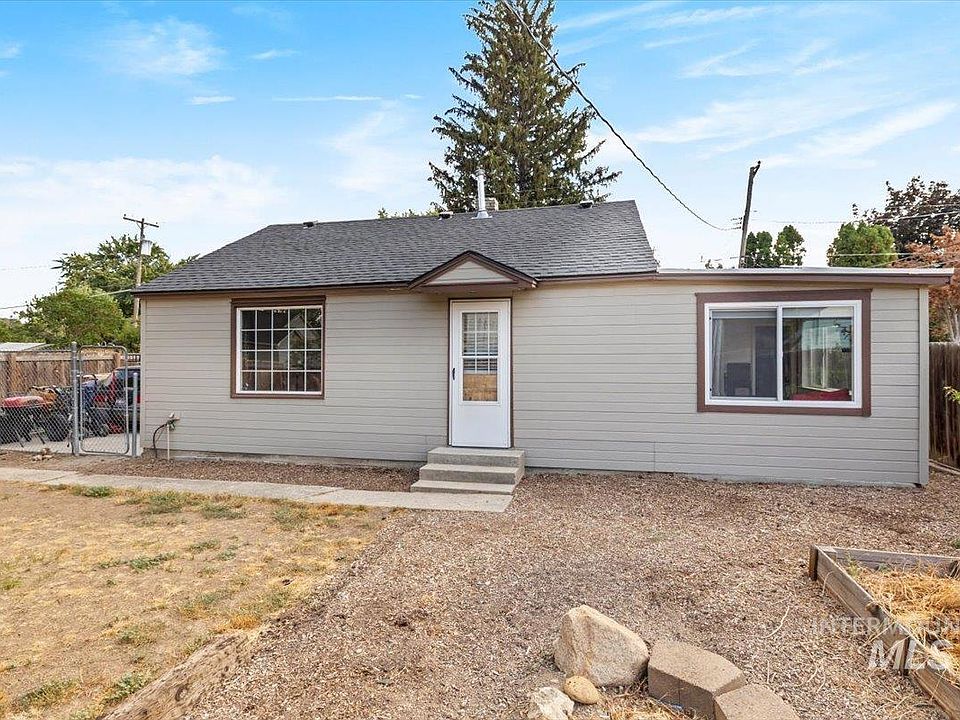 Adorable updated bungalow in the heart of downtown Meridian in private off street location and no HOA! Seller is offering $5,000 to buyer for rate buy down, closing cost, or yard updates! Hardwood floors in the living room. Roof, windows, attic insulation, paint, and granite kitchen counter all done in 2018. Heated flooring in kitchen and bathroom, Calcutta countertop & backsplash in the bathroom, and new tile in back entry all done in 2021. Large separate storage area/laundry room with new tile floor installed 09/2022. storage shed, split bedroom floor plan, completely fenced for privacy, and enough off street parking for 4+ cars. Close to shopping, dining, hospital, freeway, and Storey park. This is the lowest priced single family home in Meridian.