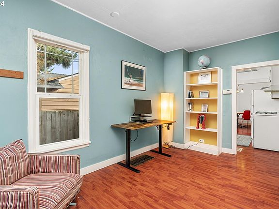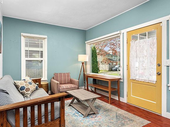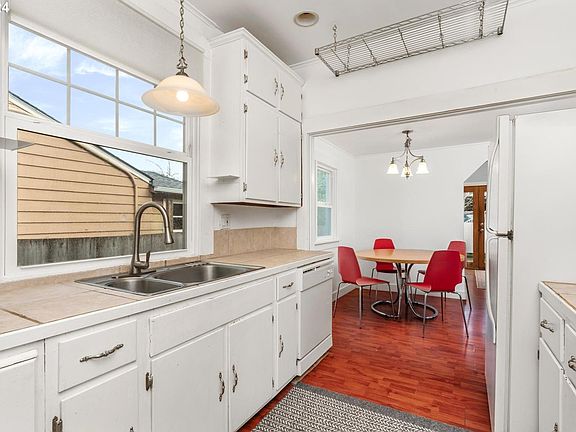 Sweet and solid bungalow in desirable Montavilla. Spacious kitchen with gas stove, abundant cabinets and counter space opens to large dining area. Nine foot ceilings and good-sized, energy efficient vinyl windows provide great light. Hardwood and wood-like laminate flooring throughout, other than tile bathroom. Brand new 30 year tear off roof (November 2024), updated electrical wiring, panel and PEX plumbing. Mudroom with French doors leads to useable yard with party-size deck and large storage shed. Basement has good ceiling height, vinyl windows and heat. Short walk to all the restaurants and coffee on NE Glisan, including Sea & River Sushi and Futura Coffee Roasters. Walk score 77 very walkable, Bike score 88, very bikeable. [Home Energy Score = 4. HES Report at https://rpt.greenbuildingregistry.com/hes/OR10234112]