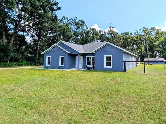 Under contract-accepting backup offers. Welcome to this spacious 4-bedroom, 2-bathroom home with 2-car garage on three lots, offering 1,751 sq ft of living space. Open floor plan offers seamless flow between kitchen, dining, and living areas. Primary suite includes private bath, tub, and walk in shower. Split bedroom plan has three additional bedrooms providing flexibility for family, guests, or office use. Outdoor features include a front and back porch, large 30’x10’ shed with bay door, private sand volleyball court, and wire fencing across the combined lots. Plenty of room for storage, recreation, or future improvements. The home is conveniently located between Ocala and Gainesville. Excellent opportunity for homeowners—unique three-lot property provides expansion potential or long-term value. Move-in ready and loaded with possibilities!