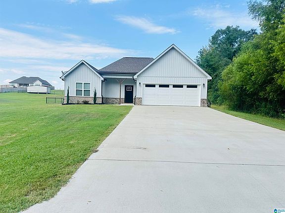 New neighborhood with a fabulous craftsman style home. Brick & Board & Batten Vinyl Siding, 1,847 SF +/- plus a 2-car garage, 4 bedrooms, 2 baths on .67 acre lot +/-. This open kitchen is the heart of the home surrounded by the great room w/soaring vaulted ceilings & a large open dining area all overlooking the back yard with a covered patio. The kitchen has stainless appliances, undermount sink, tile backsplash, work island w/breakfast bar, all granite countertops. The master bedroom is spacious with the incredible master bath, a walk-in shower and garden tub. The laundry room is just outside the master bedroom. 3 other bedrooms, 2 with walk in closets. Luxury vinyl plank flooring and carpet in the bedrooms only. Alabama power, City of Clanton Sewer, Water. See today!