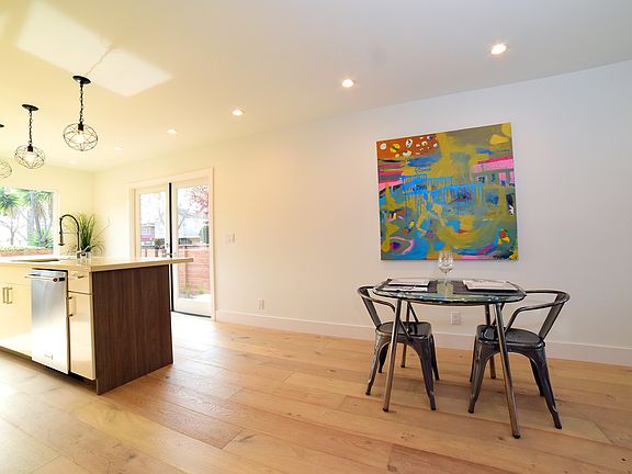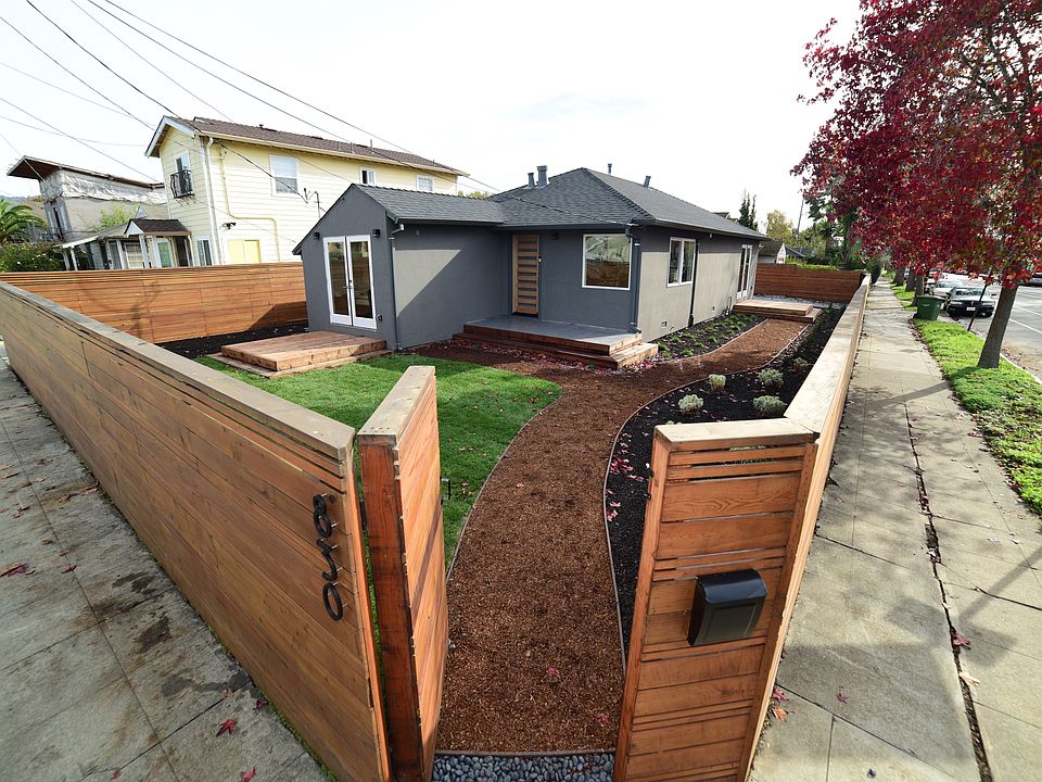 Clean Lines & Room To Breath: This light-filled and airy Berkeley bungalow offers a balance between the classic local architectural style and a mid-century modern aesthetic. Richly finished with warm hardwoods, tile, chrome, and stone surfaces. Green components and features include a tankless water heater, No VOC paints & adhesives. The kitchen, designed by the award-winning design firm KNOCKNOCK utilizes kitchen cabinets (Modcabinets) which are locally sourced through EcoHome Improvement. They meet and maintain the strictest indoor air quality standards by using no added urea-formaldehyde (NAUF) hardwood plywood. and are finished with waterborne finishes containing no volatile organic compounds (VOCs), hazardous air pollutants (HAPs), or heavy metals. Additional kitchen features include stainless steel KitchenAid appliances (gas range, french-door refrigerator, and dishwasher), stainless steel professional sink & plumbing fixtures, and a full tile backsplash. The large counter top and bar are perfect for entertaining and casual meals. Additional green components include dual-mode water saving toilets by Toto, a tankless water heater, and energy efficient dual pane windows. Both bathrooms feature warm tile, deep soaking tubs, and rain shower heads giving both a spa-like feel. The large corner lot is fenced for privacy and feature large french-doored decks enabling you to bring the outside in. Just a few short blocks away are Gilman Ave. & 4th St. offering multiple quality options for shopping and gourmet eateries, and scenic interaction. Nearby Aquatic Park, Bay Trail, and the Berkeley Marina enable you to experience the great outdoors. Multiple commuting options include HWY 80, Casual Carpool, North Berkeley & Downtown Berkeley BART, AMTRAK, & AC Transit transbay bus lines. Beautiful functionality and close proximity to a multitude of local amenities make this West Berkeley gem the perfect home for your busy lifestyle..