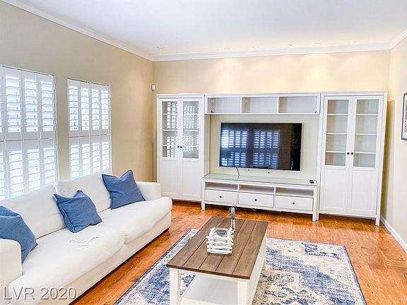 Beautiful and Pristine unit just ready for your personal belongings to Move in! Fully furnished tastefully with all appliances included. The kitchen is a Chefs dream come true offers stainless steel appliances, wine fridge, stunning cabinetry and granite countertops. Tenant only needs personal items: Pots and Pans etc. Unit offers 2 large bedroom, one w/king size bed & other w/queen size bed, built-in entertainment center w/ TV, 1 car garage just outside of unit, walking dist. to Down Town Summerlin, Red Rock Casino and so much more. NO PETS