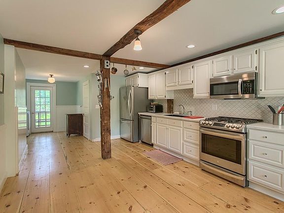 Iconic Farm Home with 10 acres of mostly Pasture land owned by many generations of the Hargraves family for over 250 years. One of Ashby's oldest homes set back of the road in a Serene and Private setting. Bring the Horses and Livestock and/or grow your own vegetables - two story Barn w/hayloft and separate 3 Stall Barn with electricity and water. New 4 bedroom Septic,all wood flrs sanded and urethane, remodeled Kitchen-Updated Cabinets, Corian Countertops, Tile Back Splash, LG Stainless Appliances, New Old Growth Pine Wood Flring, Granite Sink, New Picture Window, Exposed Post and Beam and old style walk in pantry. Living room Hearth has new brick work with Vermont Castings wood stove. Other updates: Blown in Insulation, Hybrid Electric Hot Water Heater, Well Pump, Basement and first flr new PEX Plumbing, remodeled and Tiled second floor bathroom, Painted ½ of Exterior. Flr plan lends itself to the possibility of a separate living area with rental option. Attached garage with workshop