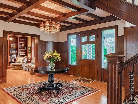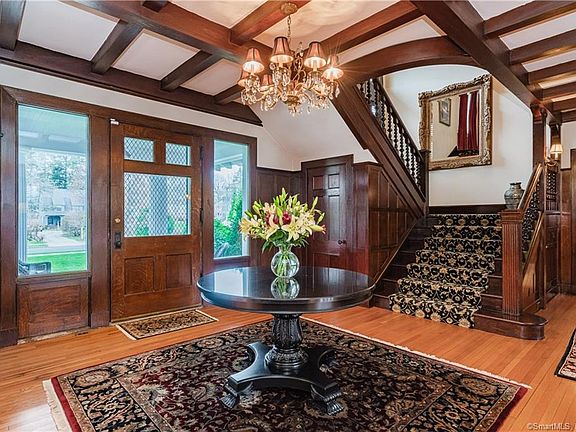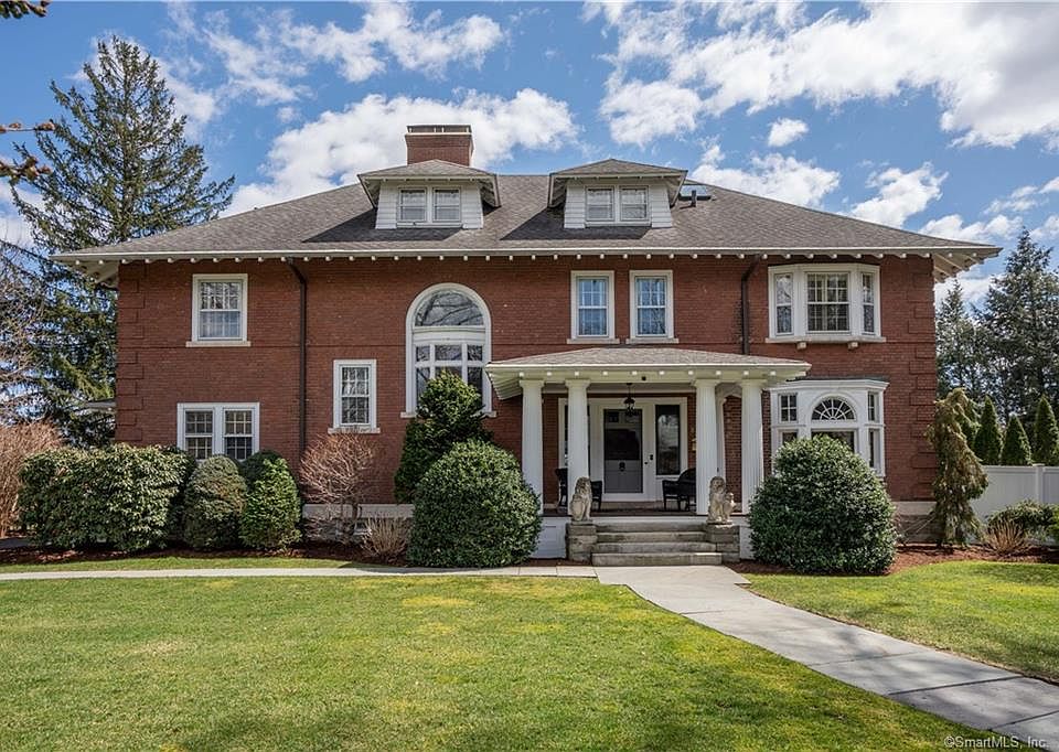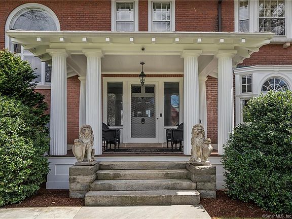 Welcome to this classic Georgian brick Colonial in Hartford's historic West End. Designed by famed architect Edward Hapgood for Sylvester Dunham, president of the Traveler's Insurance company. This home has it all. From the moment you walk up to the front porch, where you can relax and greet neighbors, you notice all the beautiful details. Upon entering the gracious foyer you'll see an open floorplan (very forward thinking for a home built in 1903. The original details will captivate you - the natural woodwork, raised panel moldings, beamed ceilings, pocket doors, 5 fireplaces, French doors, front & rear staircases and HW floors throughout 1st & 2nd floors. The spacious living room opens to a library/music room with built-ins. The large dining room can accommodate all your family and friends. The spacious kitchen has custom walnut cabinets with the quality of fine furniture. You will enjoy the huge island with seating, stainless appliances including a Sub Zero refrigerator, a Sub Zero freezer, Viking 6 burner cooktop, Miele double ovens, 2 Bosch dishwashers and a wine cooler. Add granite counters, onyx backsplash and a breakfast area and you may never leave this room. Take the wide staircase to the 2nd floor with the primary suite, 3 additional bedrooms (one without a closet and laundry area. 3 bedrooms, wonderful bonus room plus a remodeled bath complete the 3rd floor. The first floor and backyard are wired for sound as well as a home intercom. Additional details below.