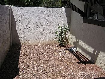 One Level Townhouse w/ tile floor entry. Living room w/ tile floor. Kitchen w/ tile floor, range/oven, dishwasher, disposal, microwave, pantry closet and eat-in area. Outside storage with W/D. Front covered patio w/ rock area and block fence. Two uncovered reserved parking. Community pool available. Pet Policy: One small dog only at additional 30.00 per month, sorry no cats are permitted. For showing instructions please call Yazmin at ext 203
