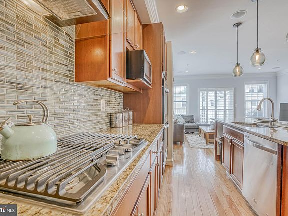 Looking for a First-Class home with Terrific Value? This end-of-group provides tons of natural light with 4 levels designed to suit your needs. The main level offers a large 2 car garage and bedroom that could also be a flex space for your at-home office. The second level has a great floor plan for entertaining with a separate living room, beautiful gourmet kitchen with island, wall ovens, SS appliances, pantry, wood floors, sound system, rear balcony, family room, and so much more. The bedroom level has a convenient laundry area, a primary suite with a walk-in closet, dual vanity, separate shower, plus spa tub, and a second spacious bedroom. The room with a view is the loft-style area with a wet bar and half bath, leading to the roof deck with fantastic views of the water and Baltimore skyline. Let's not forget the dual HVAC, sprinkler, and security systems. This is not a home you will want to skip, since now is the best time to pamper yourself.